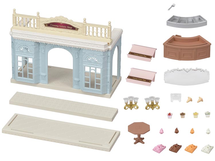 カウンターやテーブルなどが付属していて、ジェラート屋さん遊びが楽しめます。