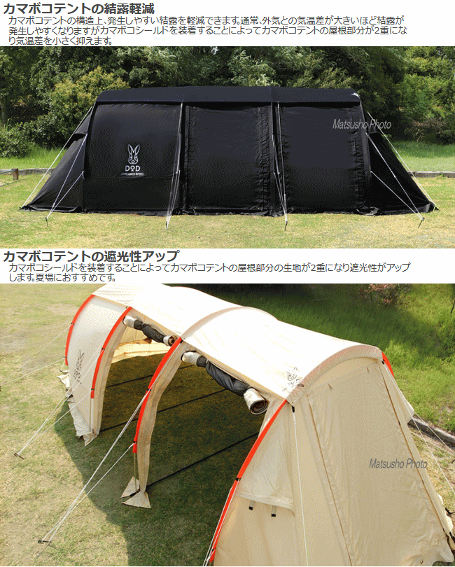 カマボコテントの屋根に装着することによって結露軽減や遮光性アップが期待できます。